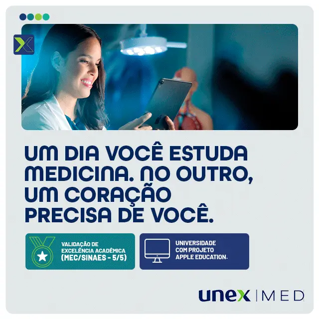 Com a chegada de Medicina, nos tornamos Unex, a Faculdade e Centro Universitário de Excelência que tem como missão formar profissionais globais, empreendedores, com uma visão crítica e social, dispostos a buscar soluções para os desafios do dia-a-dia, pautando-se na responsabilidade social e ambiental, ética e respeito à diversidade.